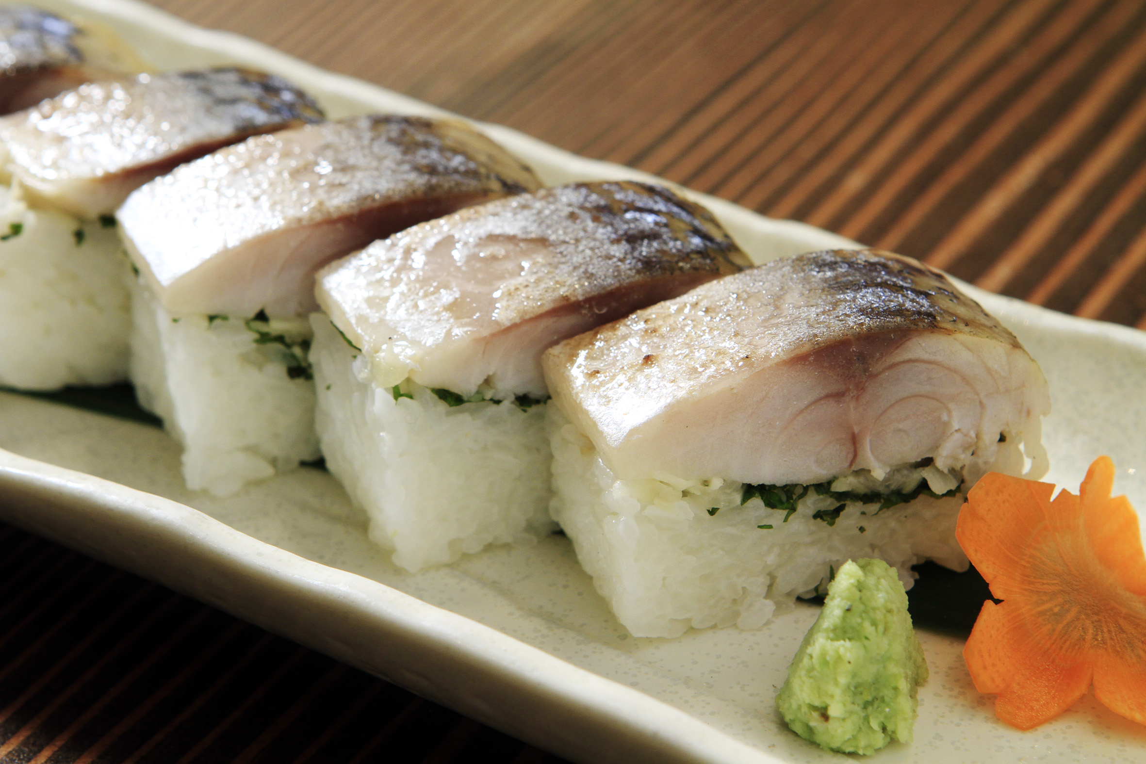 - Pressed Saba MackerelMarinated Mackerel, Shiso Leaf