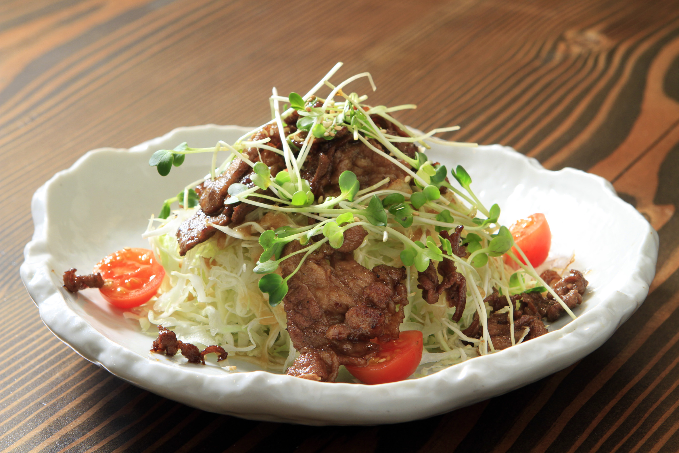 - Beef BBQ Yakiniku SaladUs Wagyu Beef, Cabbage, Garlic Sesame Dressing